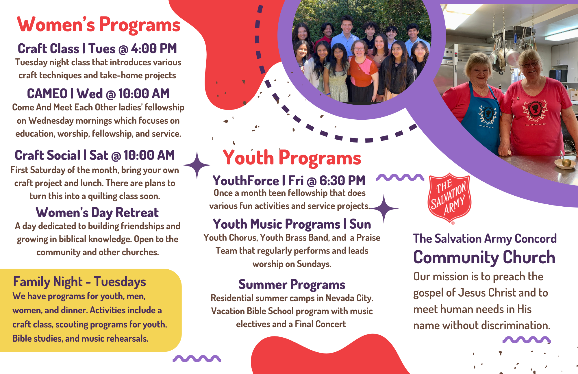 If you are coming to any of these fellowship opportunities for the first time, please check with the Church Office (925) 676-6180 for exact times as circumstances may change